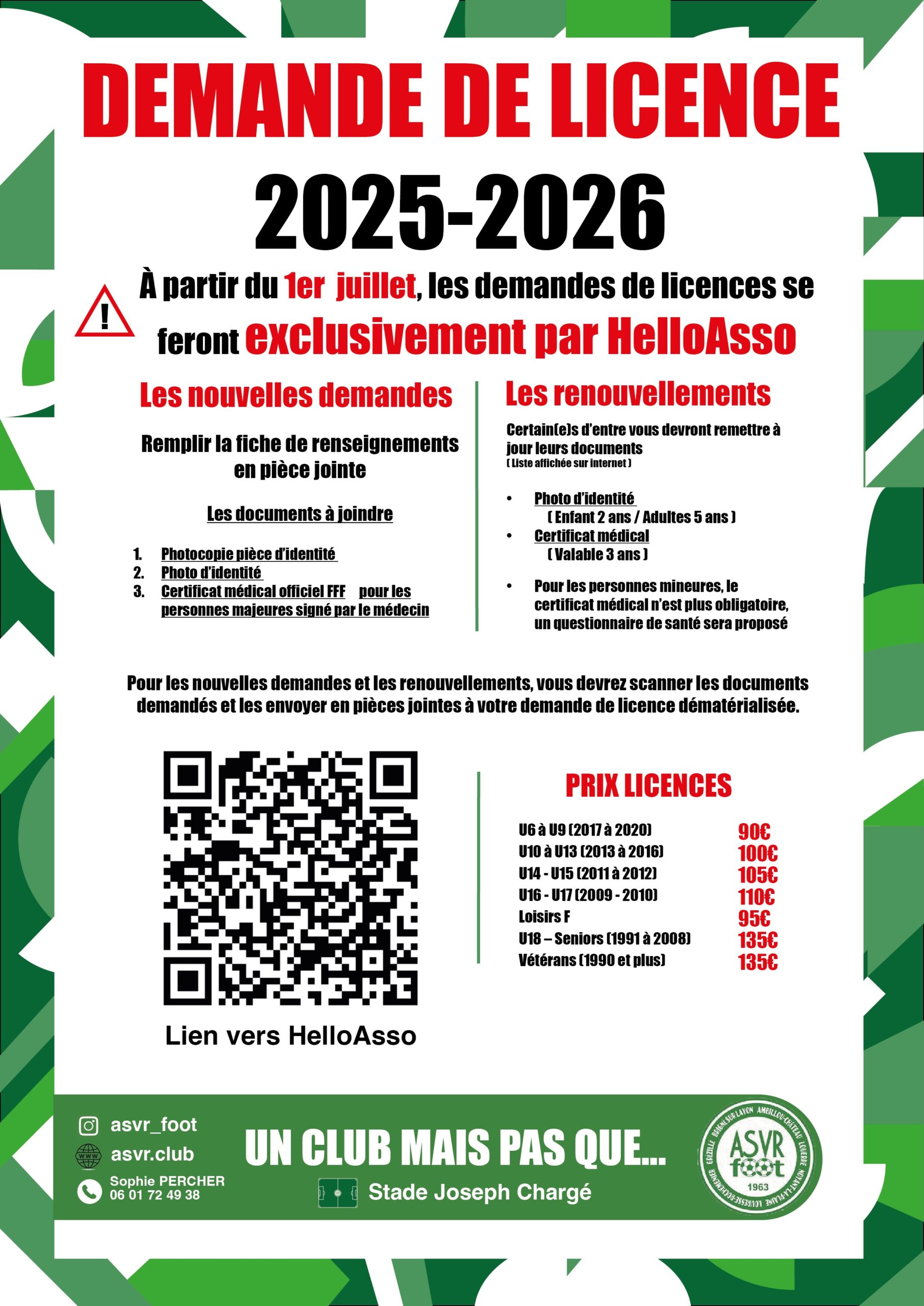 - via ce lien : https://www.helloasso.com/associations/asvr-foot/adhesions/licence-2025-2026-2