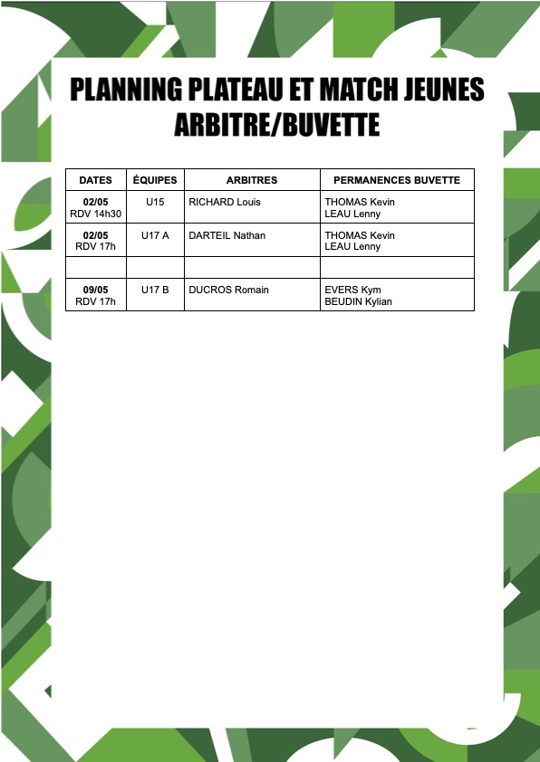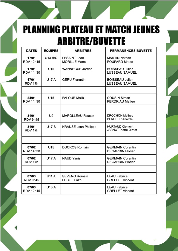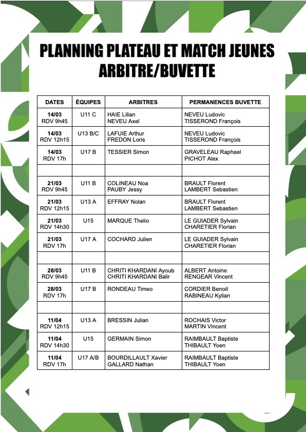 PLANNING BUVETTE ET ARBITRAGE JEUNES